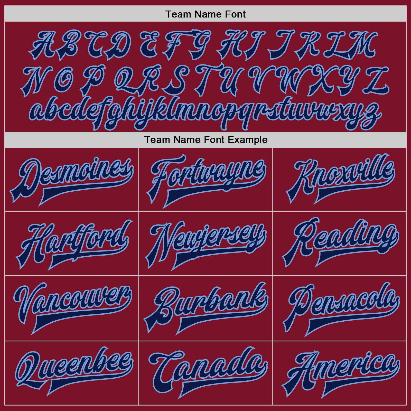 Custom Crimson Navy-Light Blue Bomber Full-Snap Varsity Letterman Two Tone Jacket