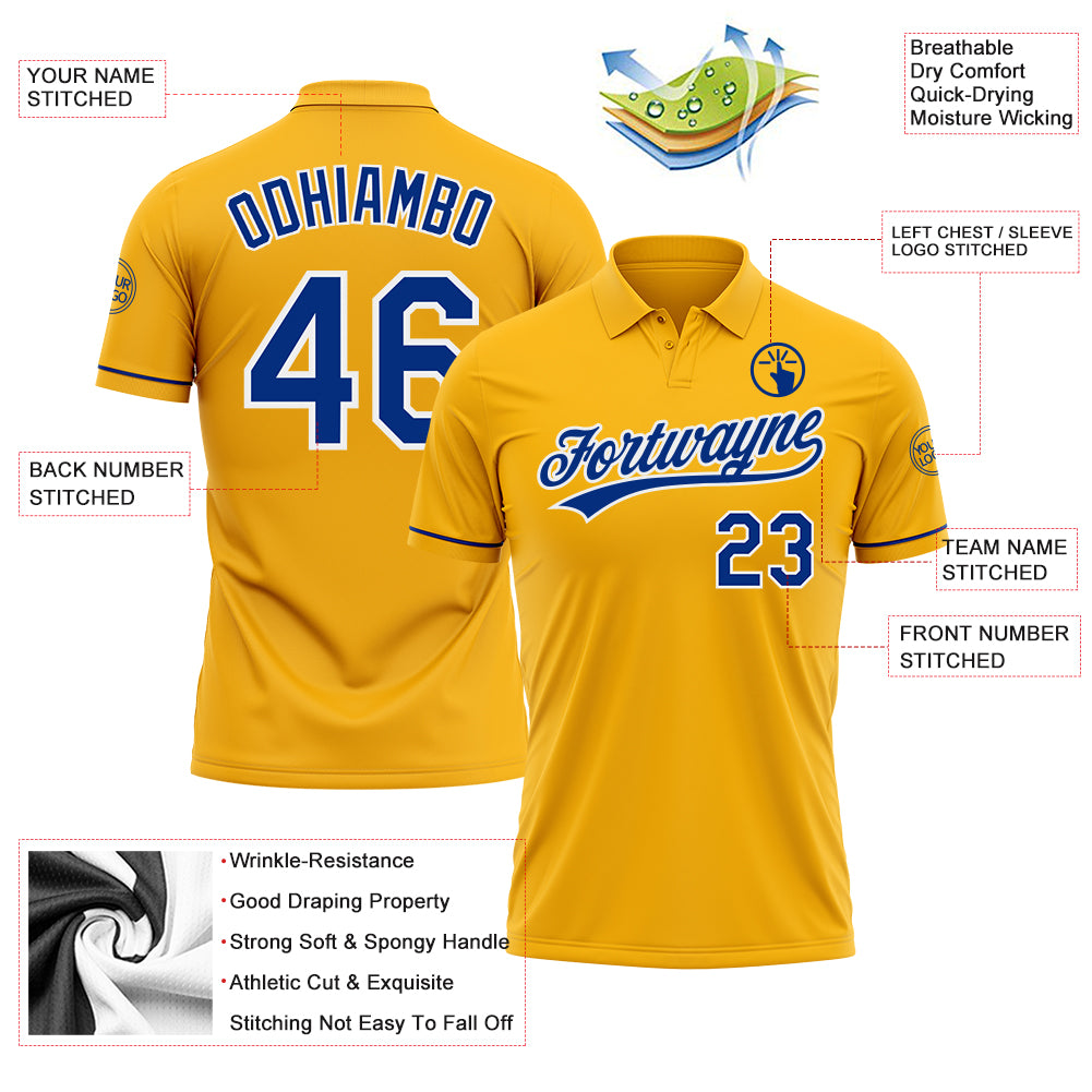 Custom Gold Royal-White Performance Vapor Golf Polo Shirt