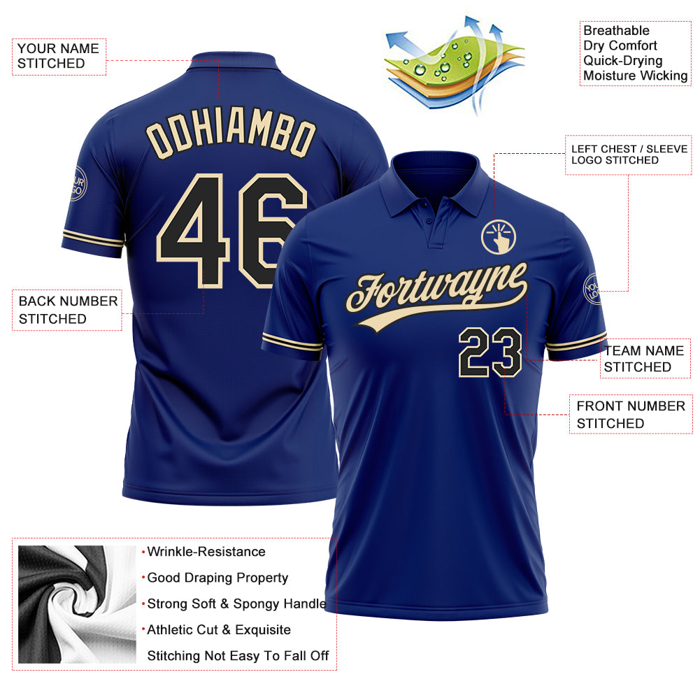 Custom Royal Black-City Cream Performance Vapor Golf Polo Shirt