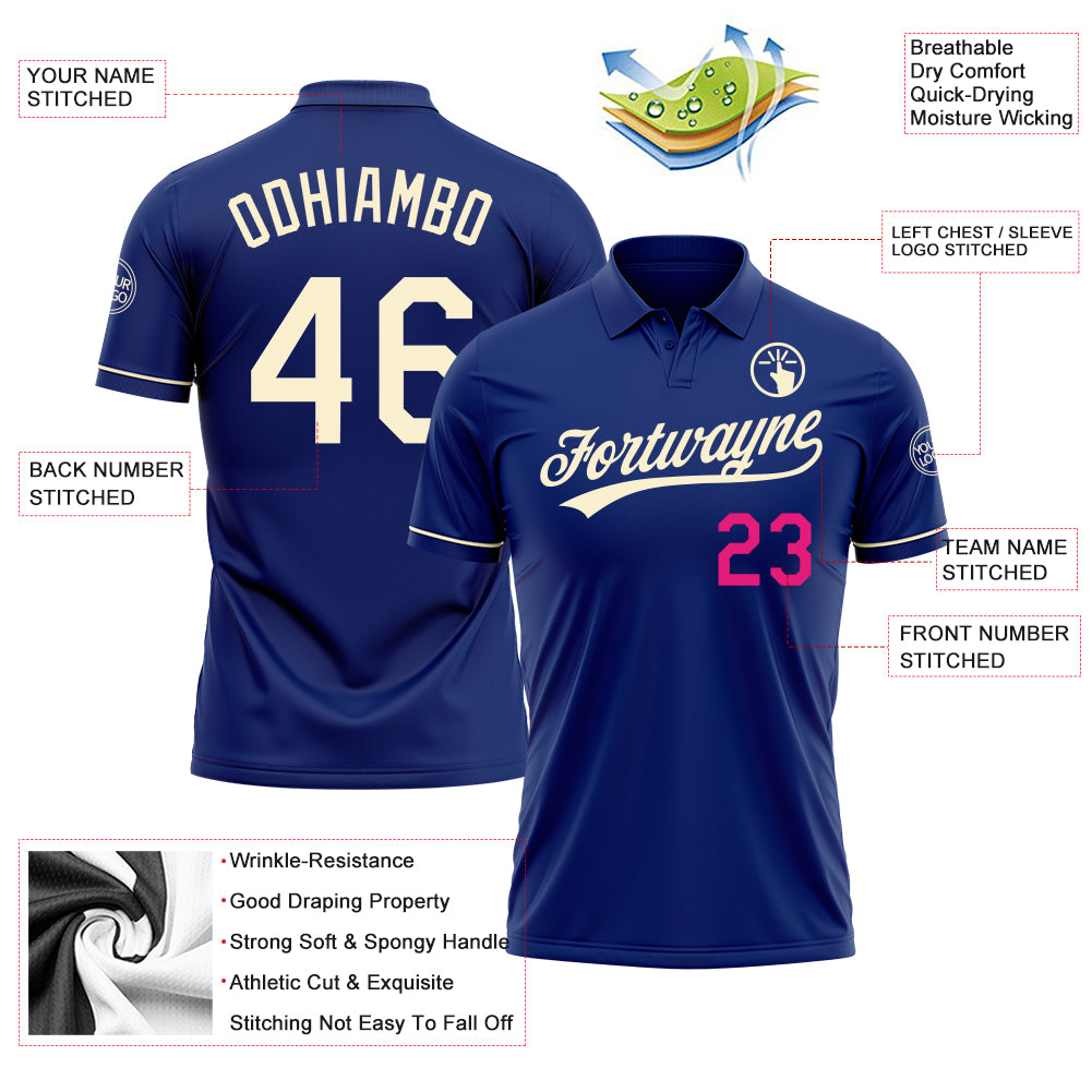 Custom Royal Cream-Hot Pink Performance Vapor Golf Polo Shirt