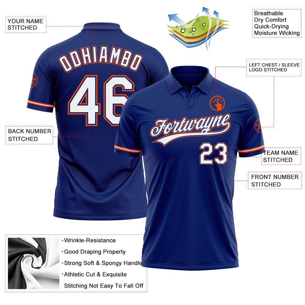 • Custom Royal White-Orange Performance Vapor Golf Polo Shirt